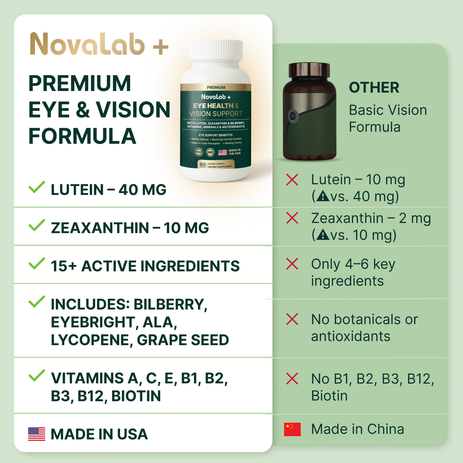 Our NovaLab+ formula is rich in powerful antioxidants, including Lutein & Zeaxanthin, which help protect against oxidative damage — one of the leading causes of macular degeneration. These nutrients are essential to maintaining sharp vision and long-term eye health as you age.